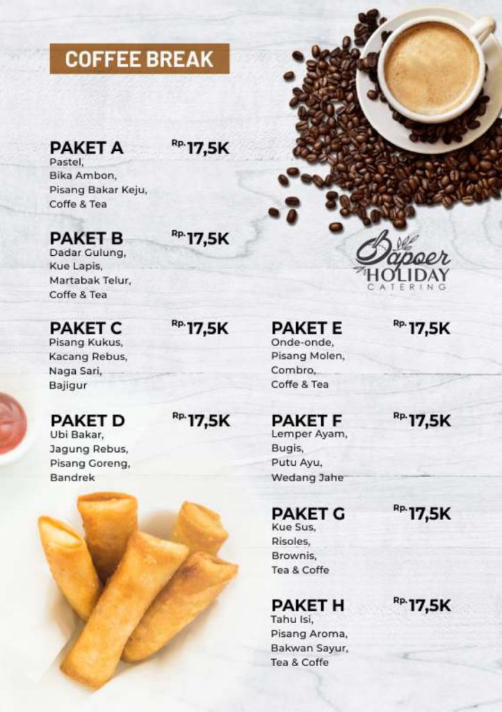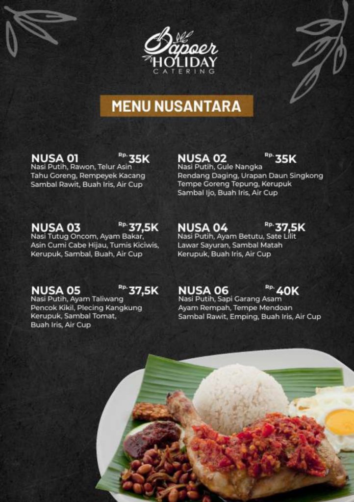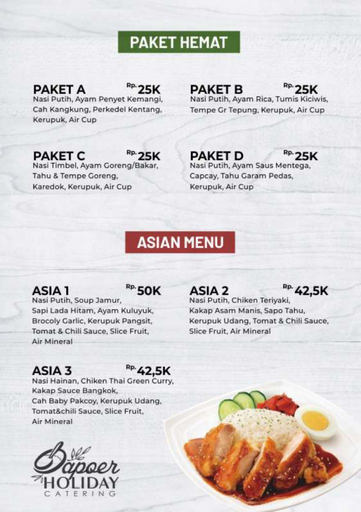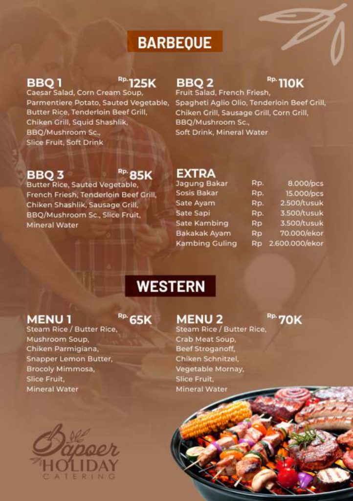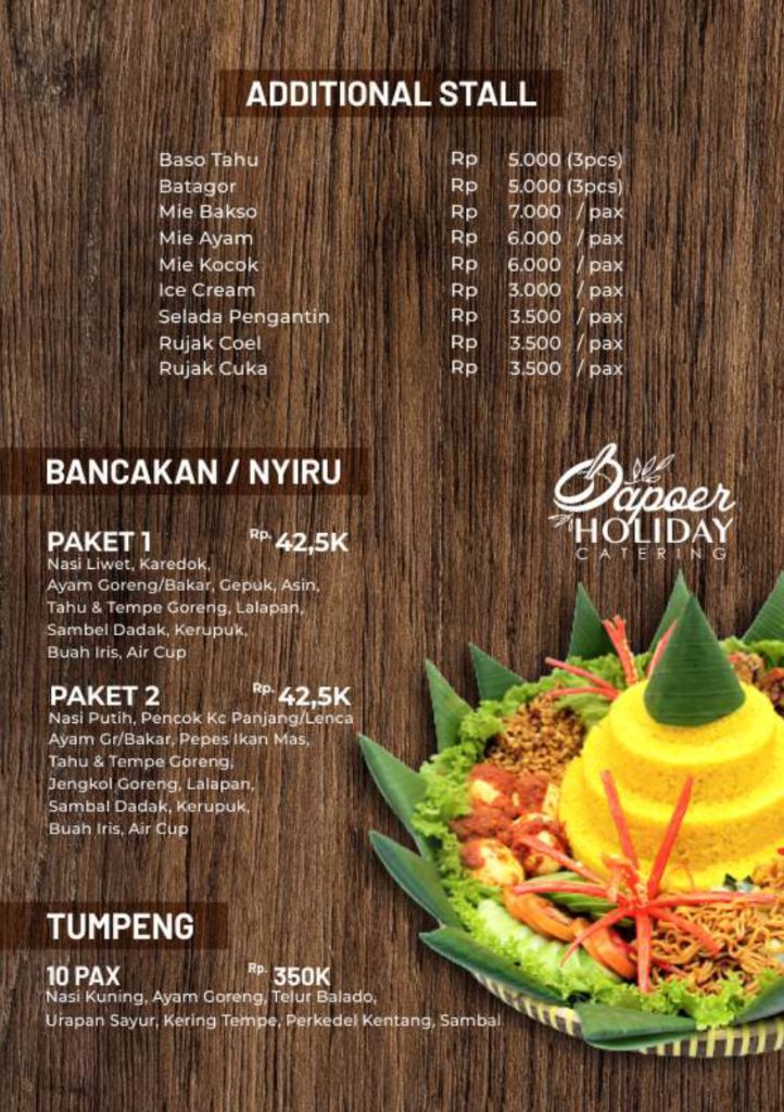 Menu Catering vila istana bunga dan Villa di Lembang dan villa di Bandung di bawah adalah sebuah pilihan penunjang yang bisa anda pilih dalam melengkapi segala kebutuhan selama anda menempati masa berlibur di villa istana bunga atau di villa – villa lembang bandung dan sekitarnya, kamipun menyediakan layanan jasa catering partai besar maupun kecil yang siap kami antar kemana saja di seputar bandung dengan penyajian bupe atau box anda bisa memilih menu di bawah ini, anda juga bisa menyeting menu sendiri sesuai keinginan anda dengan harga yang akan kami sesuaikan setelah ada kepastian menu yang akan di pilih. : 0821-1632-6257